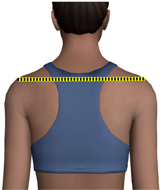 Measure from the edge of the left shoulder across the back of the neck continuing to the edge of the right shoulder.